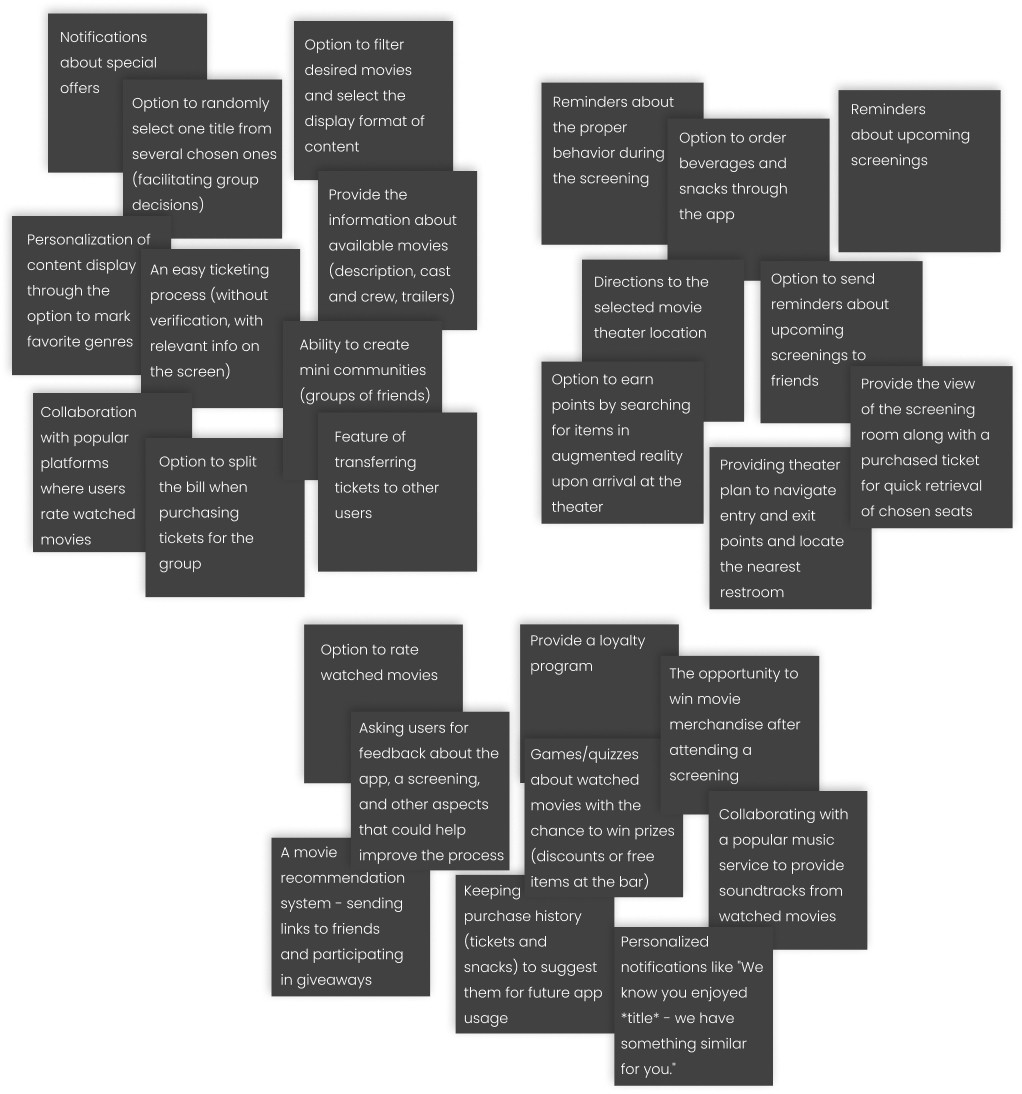 I analyzed the individual stages of the user journey for the goal: going to the cinema with friends. Thanks to the exercise, I identified certain opportunities: